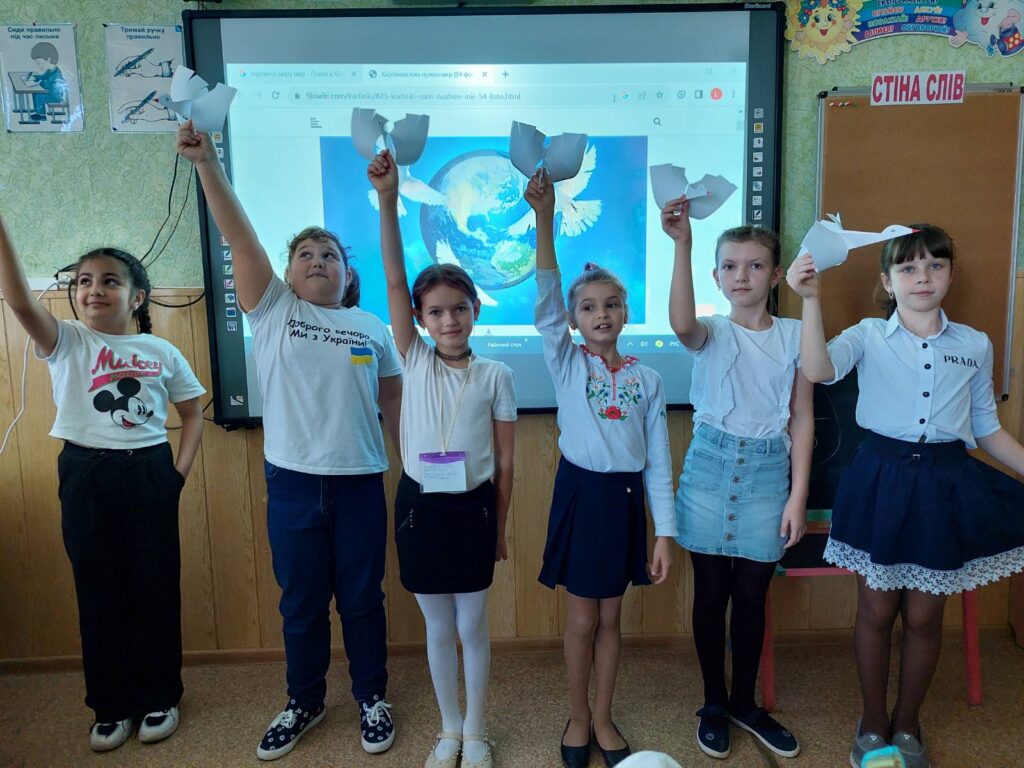 Учні 4А класу кл.керівник Литвин Л.І. долучились до проведення флеш мобу “Ми за мир” і виготовили символів миру.